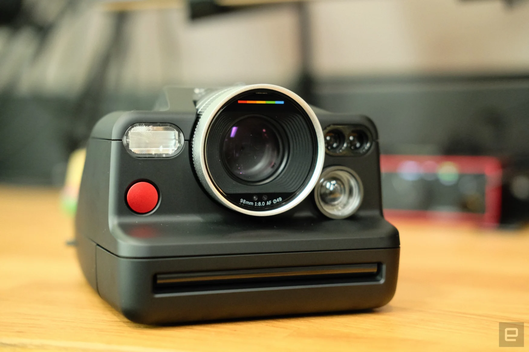 약 4년에 걸친 개발 끝에 탄생한 I-2를 손에 쥐고 있으면 이 카메라가 얼마나 애정이 담긴 제품인지 느낄 수 있습니다. 예, 거의 전부가 플라스틱으로 되어 있지만 견고하게 느껴지고 제 생각에는 멋지게 보입니다. 무광 블랙 바디에 짙은 은색과 빨간색으로 포인트를 준 이 제품은 밝은 페인팅이 돋보이는 Now 라인보다 확실히 고급스럽습니다. 폴라로이드 공동 창립자 에드윈 랜드의 명언이 새겨진 밑면까지 카메라의 거의 모든 부분에서 고급스러움이 느껴집니다.