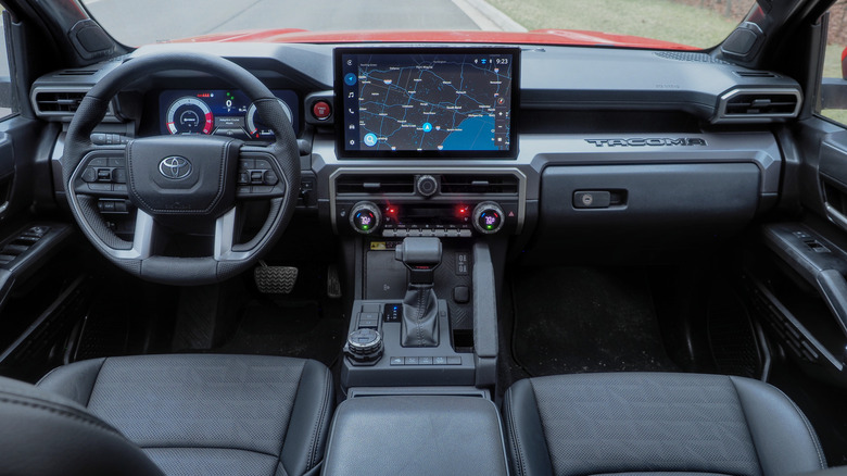 신형 타코마의 개선된 온로드 주행 성능보다 더 큰 개선점은 단연 캐빈입니다. 좀 더 구체적으로 말하자면, 기술과 사용자 편의성입니다. 구형 트럭의 경우, 부족한 소재와 확실히 구식 인포테인먼트 시스템으로 내부에서 확실히 나이를 드러냈지만, 이 신형 모델은 다른 최근 도요타 모델에서 보았던 많은 발전을 차용했습니다.